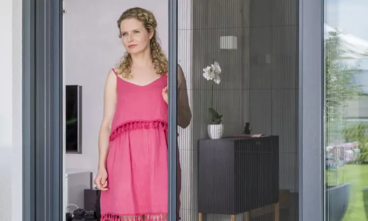 Die Neher-Pendeltür bietet nicht nur Schutz vor Mücken, sondern ermöglicht auch bequemes Öffnen in beide Richtungen, ohne dass Du eine Hand dafür benötigst. Sie schließt leise zudem und automatisch. Dank der speziellen Zapfen-Beschlag-Technik, die eine dauerhafte Funktionalität gewährleistet, wurde sie für eine geringe Einbautiefe und dennoch robust und stabil gestaltet. Bei Bedarf lässt sich die Tür leicht aus- und wieder einhängen, was besonders praktisch ist, wenn sperrige Möbel durchgeführt werden müssen.